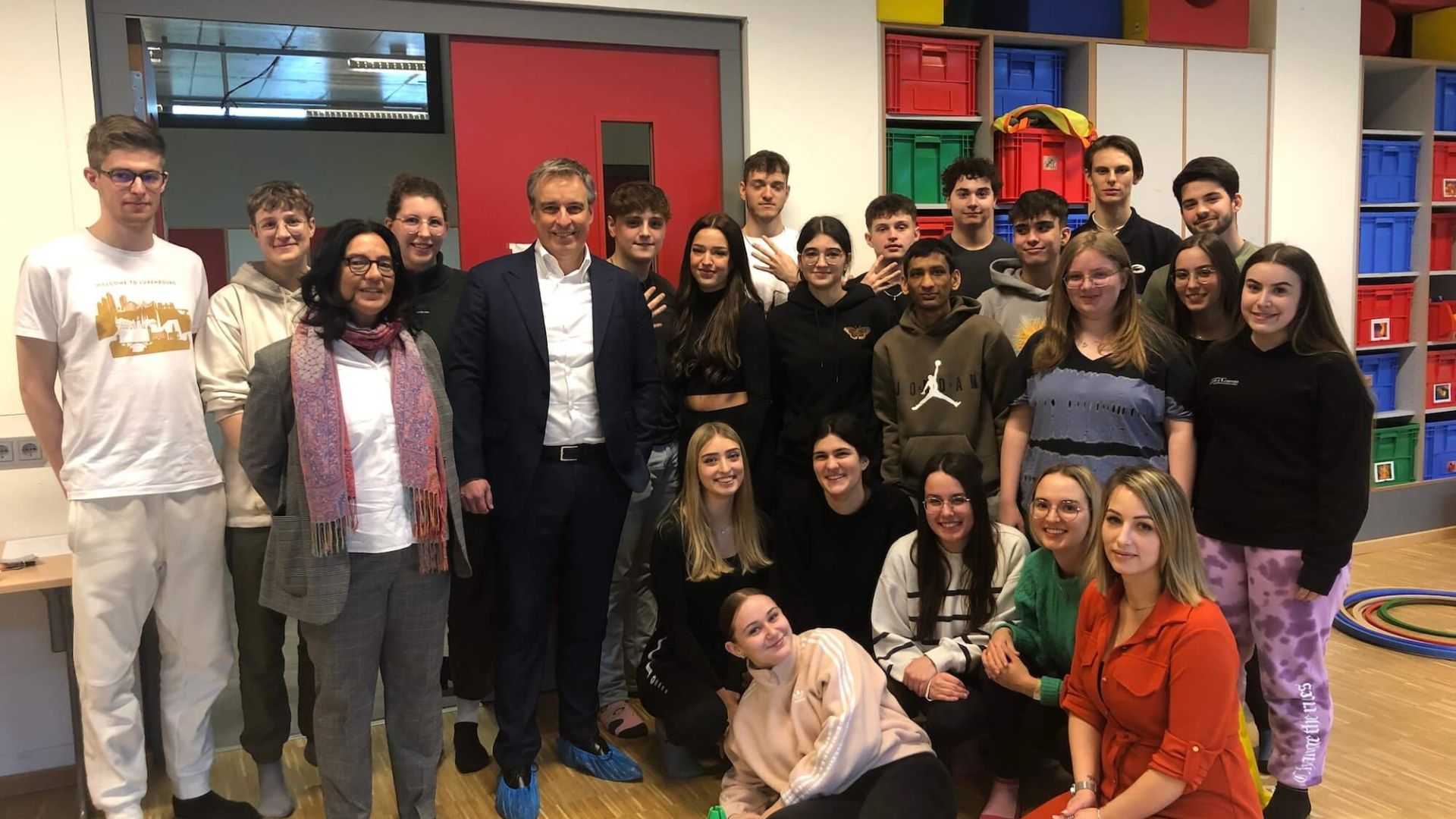 Am 13. März besuchte Herr Minister Claude Meisch im Rahmen seiner „Bildung am Dialog“-Tour das LTPES. Er hatte die Gelegenheit, unseren „Lieu de vie“ durch eine interessante und engagierte Präsentation des Schülerkomitees und der Mitglieder des SSE kennen zu lernen. Anschließend nahm der Minister an einer Psychomotorik-Stunde der Klasse 1GED13 teil. Die Schüler*innen und ihre Lehrerin, Frau Bianca Dos Santos Batista, luden Herrn Minister Meisch ein, einen spielerischen Parcours auszuprobieren, der im Rahmen der Arbeit eines Erziehers/einer Erzieherin für Kinder im Alter von 6 bis 12 Jahren angeboten werden könnte. Beide Aktivitäten ermöglichten es Herrn Minister Meisch, einen Einblick in die schulische Ausbildung und den Beruf des Erziehers/der Erzieherin zu erhalten.