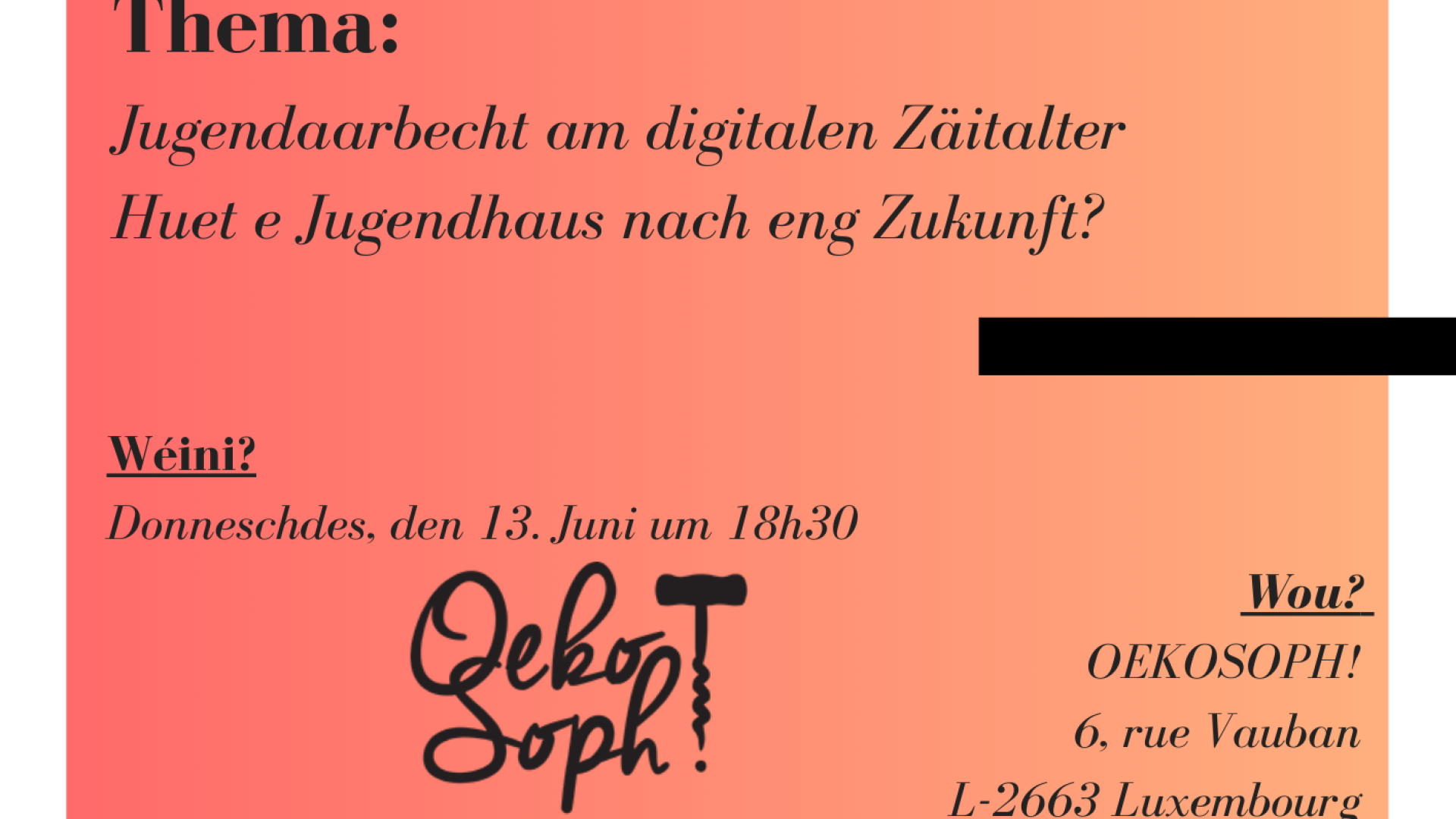 Wo? Oekosoph! (Pafendall) – 6, rue Vauban L-2663 Luxemburg